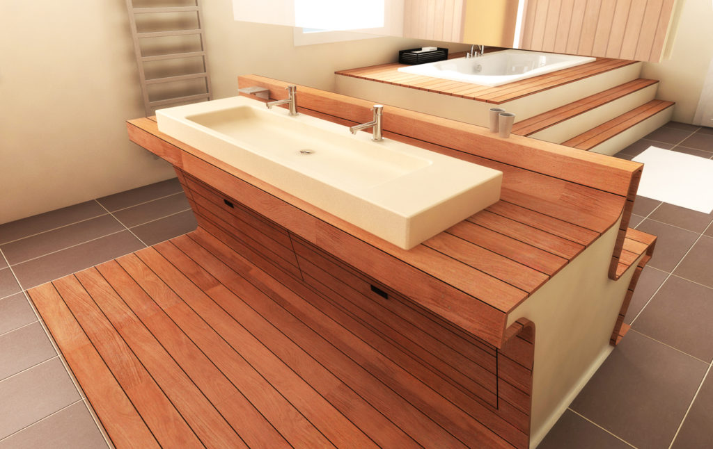 Cette maison de Compiègne avait une piscine intérieure qui ne servaient plus beaucoup après le départ des enfants. Ce grand espace d’eau de 100m² était donc parfaitement adapté a devenir un ensemble hamman, jacuzzi et salle de bain.